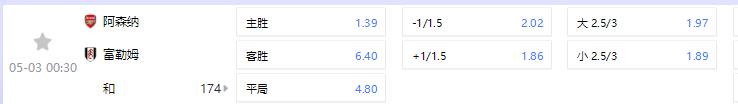 【英超】【5月3日】00:30【阿森纳VS富勒姆】金币投注贴
