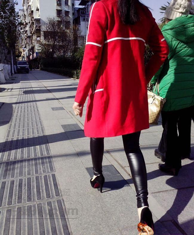街上遇到了一位穿着红衣皮裤的黑高跟少妇【15P】