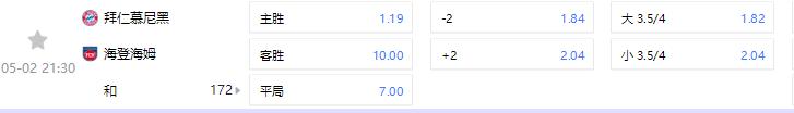 【德甲】【5月2日】21:30【拜仁慕尼黑VS海登海姆】金币投注贴